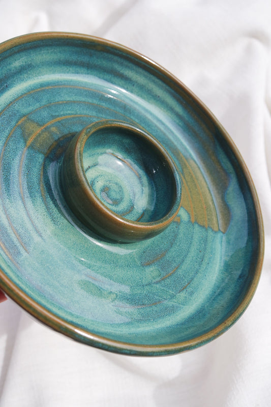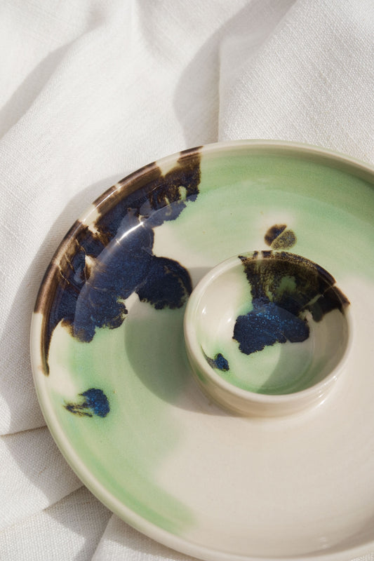 Double Dippy Plate | Light Blue and Pearl