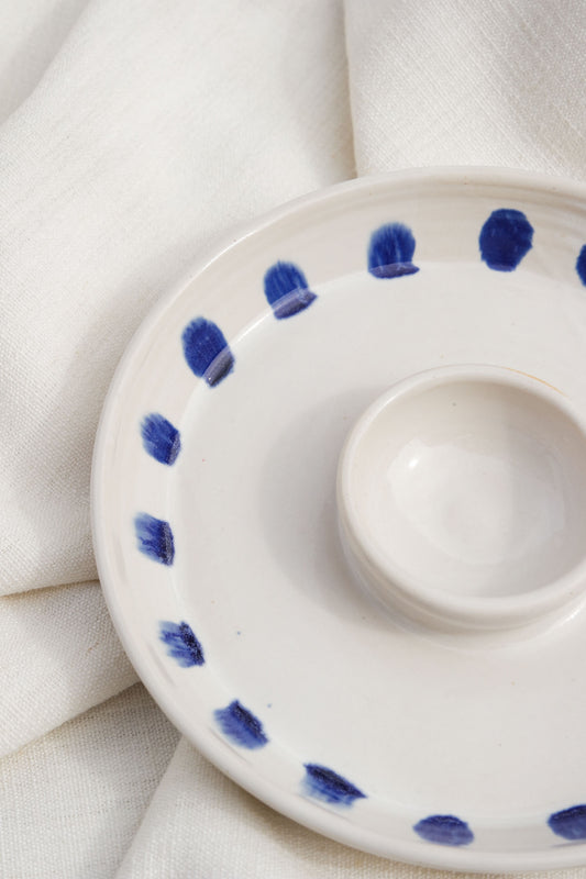 Snack Dippy Plate | Cobalt Dotted White